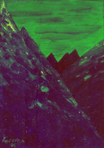 Catalogusnummer: 42 Jaar: 1989 Materiaal: Olieverf op papier Breedte x hoogte: 16,5 x 22,5 cm Prijs: € 150,=