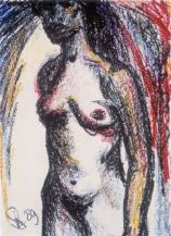 Catalogusnummer: 47 Jaar: 1989 Materiaal: Vetkrijt op papier Breedte x hoogte: 27,5 x 37,5 cm Prijs: € 200,=